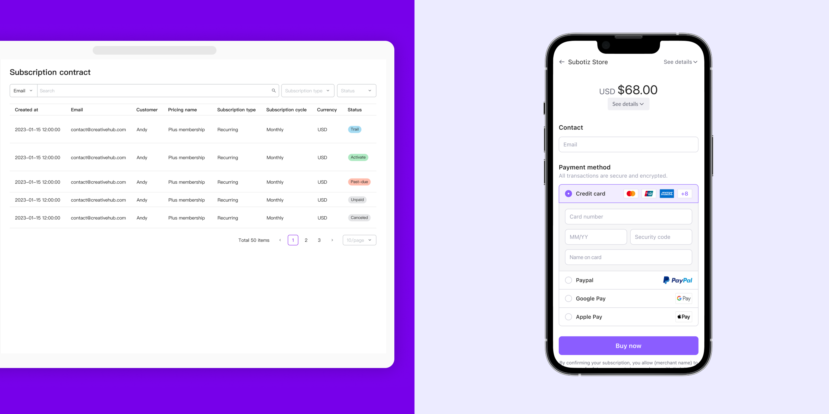 From automatic renewals to trial strategies, deliver a seamless user experience and maintain uninterrupted revenue with our comprehensive subscription management solution.